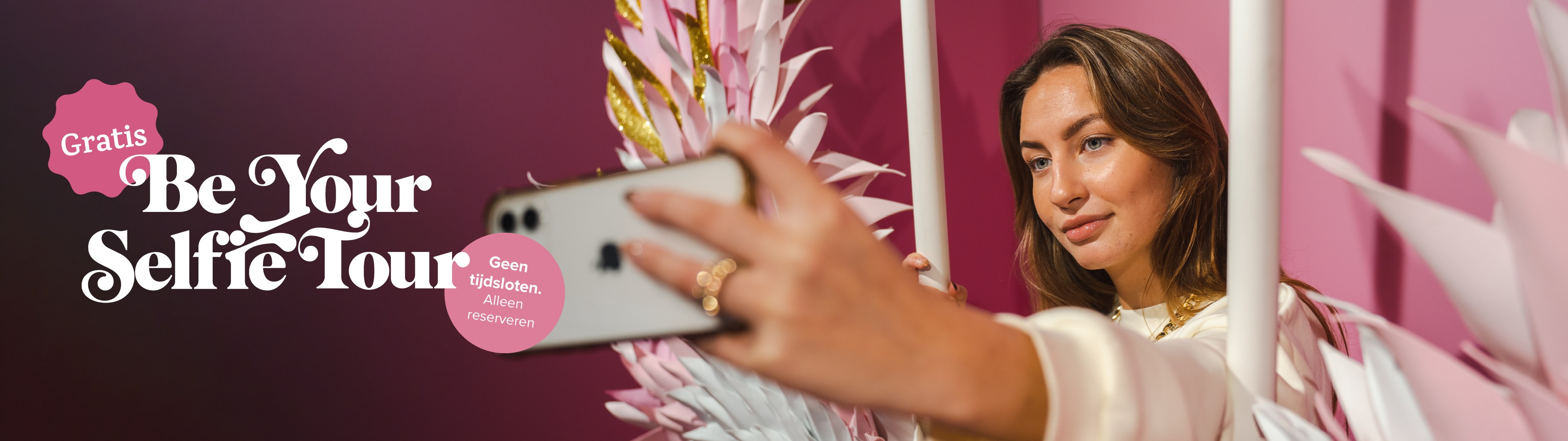 Maar, hoe krijg ik dan toegang tot de Be Your Selfie Tour? Heel simpel! Vul op deze pagina jouw gegevens in en scoor jouw gratis toegangsticket voor alle selfie kamers. Daarnaast houden wij jou op de hoogte met de tofste winacties, Tiktok workshops en speciale fotoshoots.